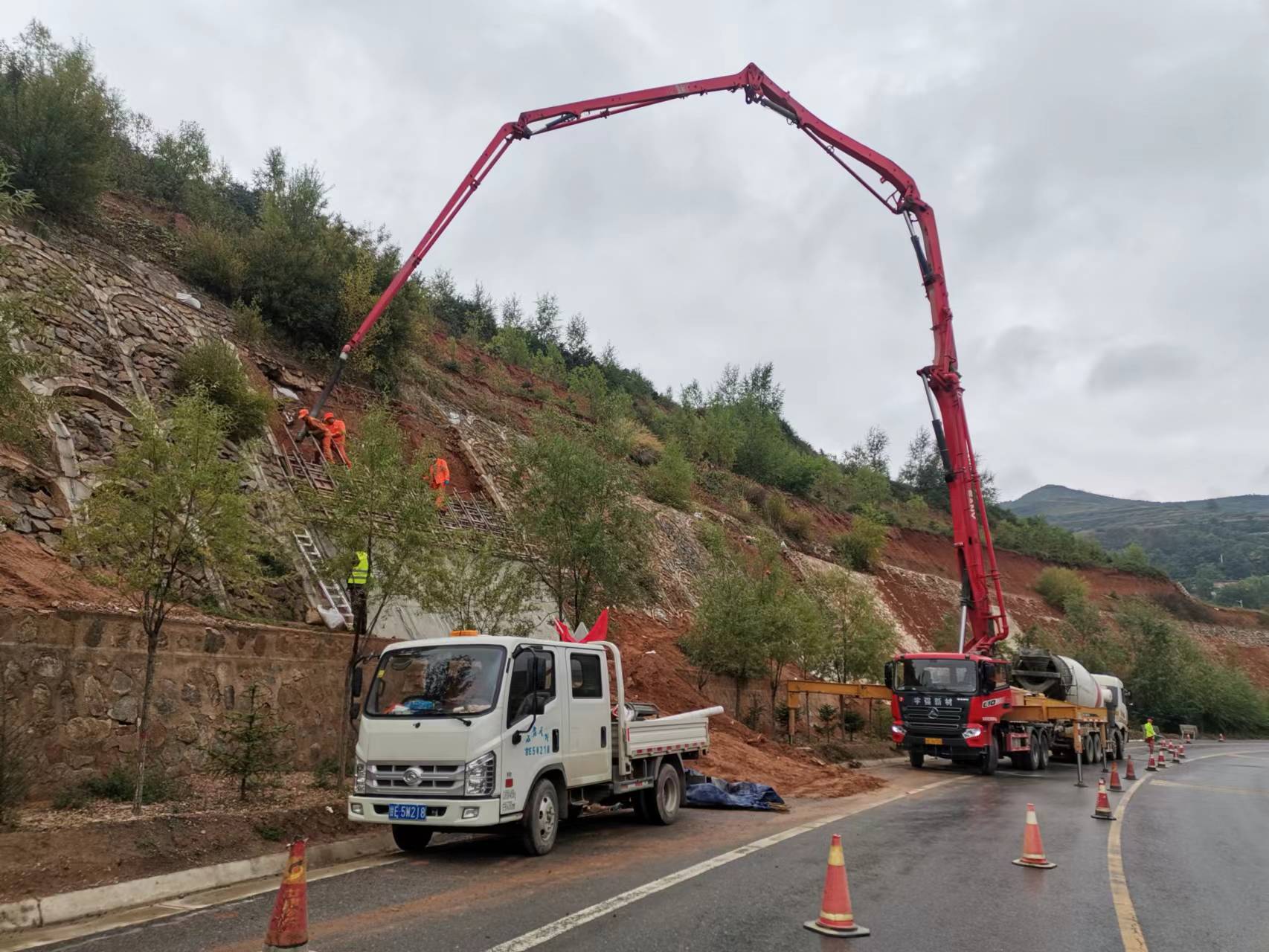 为保障过往车辆和行人安全通行,张家川公路段以“防风险、保安全、保畅通”、“安全生产专项整治三年行动”等专项活动为契机,迅速组织人员机械对损坏的挡墙拦土埂进行修复。日前,该项目工程已完工,共码生态袋及披面种草1800平方米,浇挡墙拦土埂14立方米/40米,清理平台土方928立方米,安全隐患得到彻底消除。