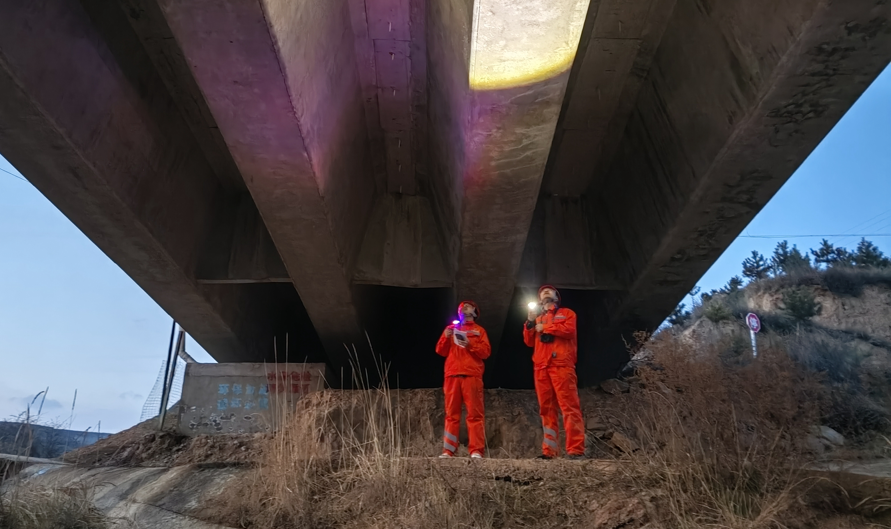 该段组织技术人员分四路对管养的G566线、S221线、S218和S323线公路路基路面、路肩边坡、桥梁、涵洞、隧道及公路沿线设施等进行深入排查,重点对傍山、临崖、高边坡、高挡墙等路段以及桥梁伸缩缝、梁体、墩柱盖梁等重点部位进行了一次全面排查。