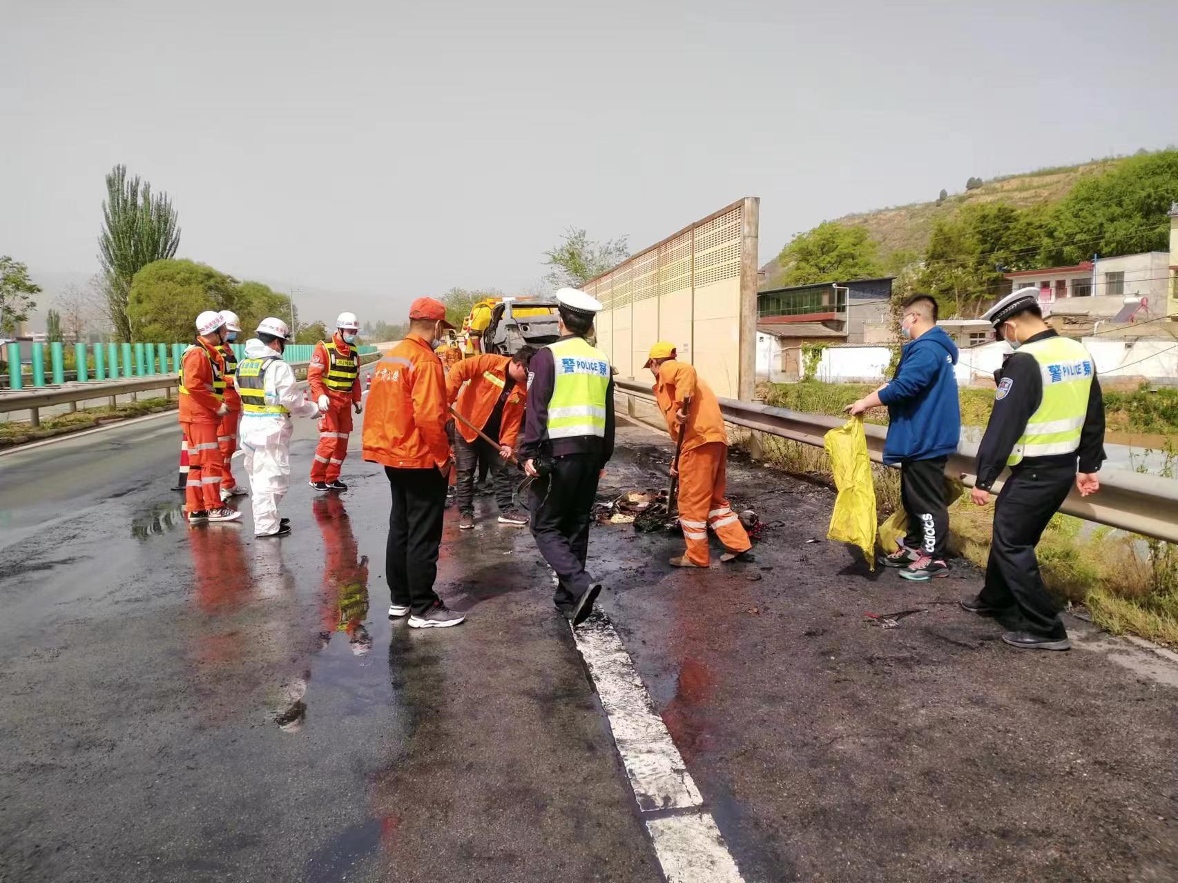 28日10时40分,经过养护、收费、救援、消防和交警等“一路五方”一个半小时的联合作战,G30线连霍高速公路天定段上行线K1475+600处(天水市武山县城关镇)小客车自燃事故处置完毕,道路恢复正常通行。