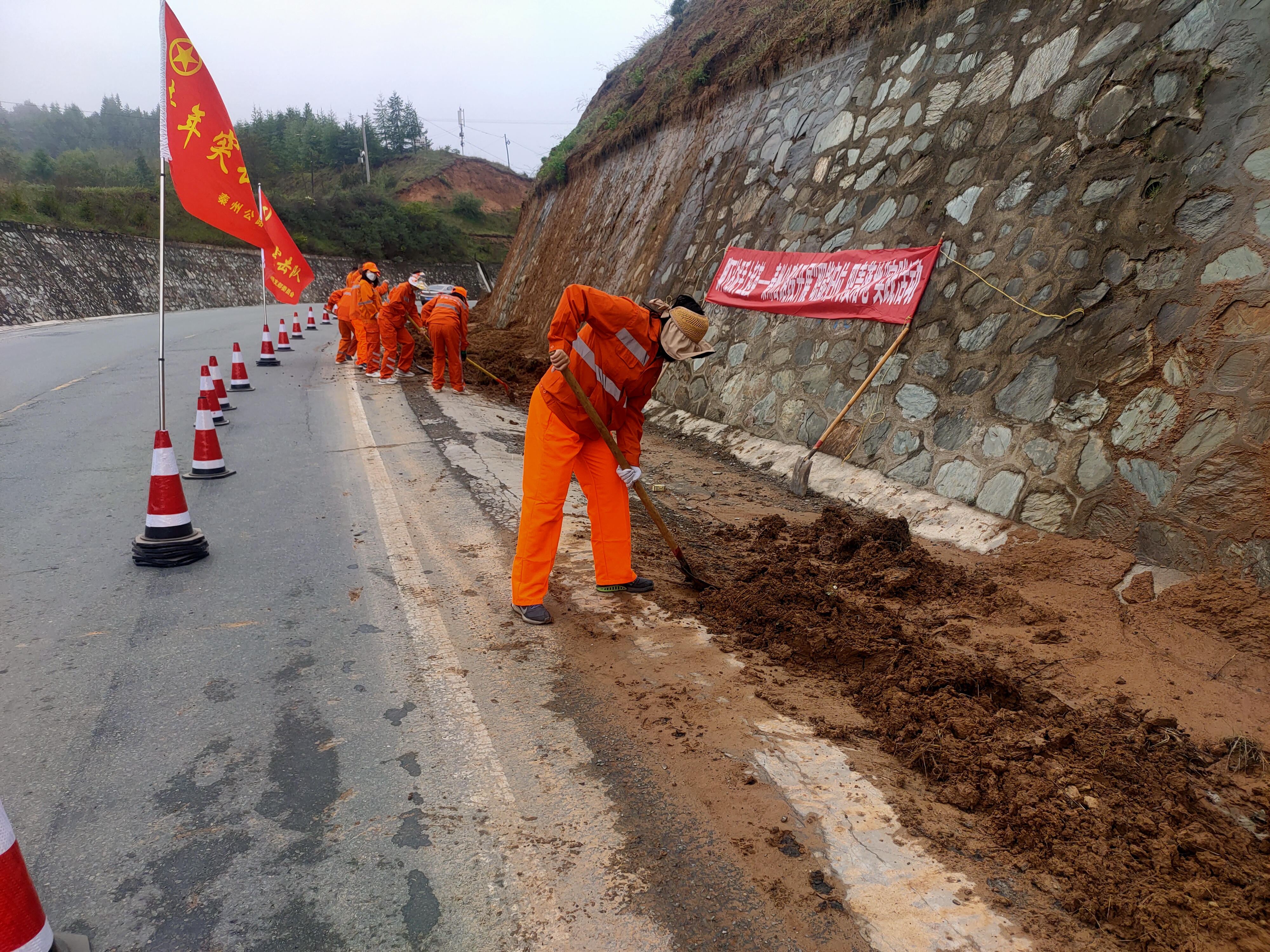 近日,秦州公路段组织机关全体人员,深入G316线开展路容路貌整治大会战。段机关20余人统一着养护标志服,充分发扬“脚下沾泥、手上磨茧”的吃苦精神,在G316线K2455+500--K2456+100路段清理边沟内的淤泥、碎石、垃圾以及路肩、边坡的堆积物,保障了路容路貌干净整洁。(陈丽星)