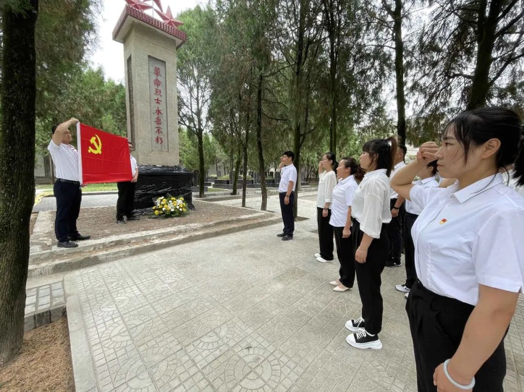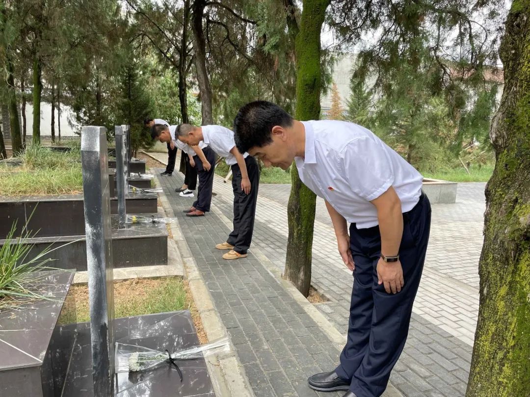 在庄严肃穆的革命烈士纪念碑前,全体党员干部整齐肃立向对革命事业做出卓越贡献的先烈们敬献鲜花、行三鞠躬,向长眠于此的革命先烈致以深深的哀悼和敬意。