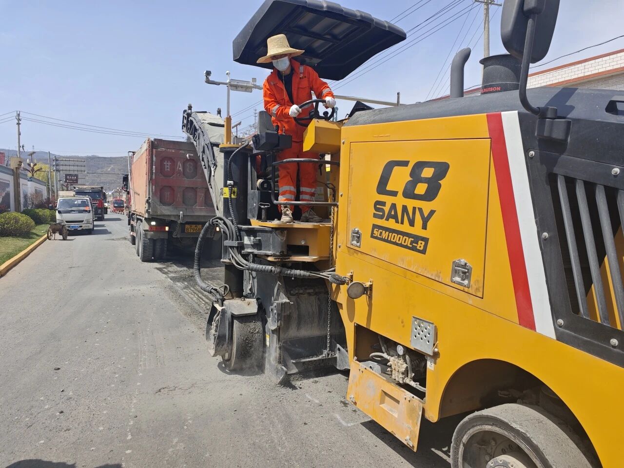 机械化作业,安全为先。该段严格落实岗前安全技术交底,规范布设施工作业区。现场交通指挥员和安全员手持指挥旗,引导过往车辆有序避让大型机械;操作人员持证上岗,严格按照规程驾驶铣刨机与装载机等机械设备。人机协同,环环相扣,确保了在大流量交通环境下,油路修补作业安全、高效、有序推进。