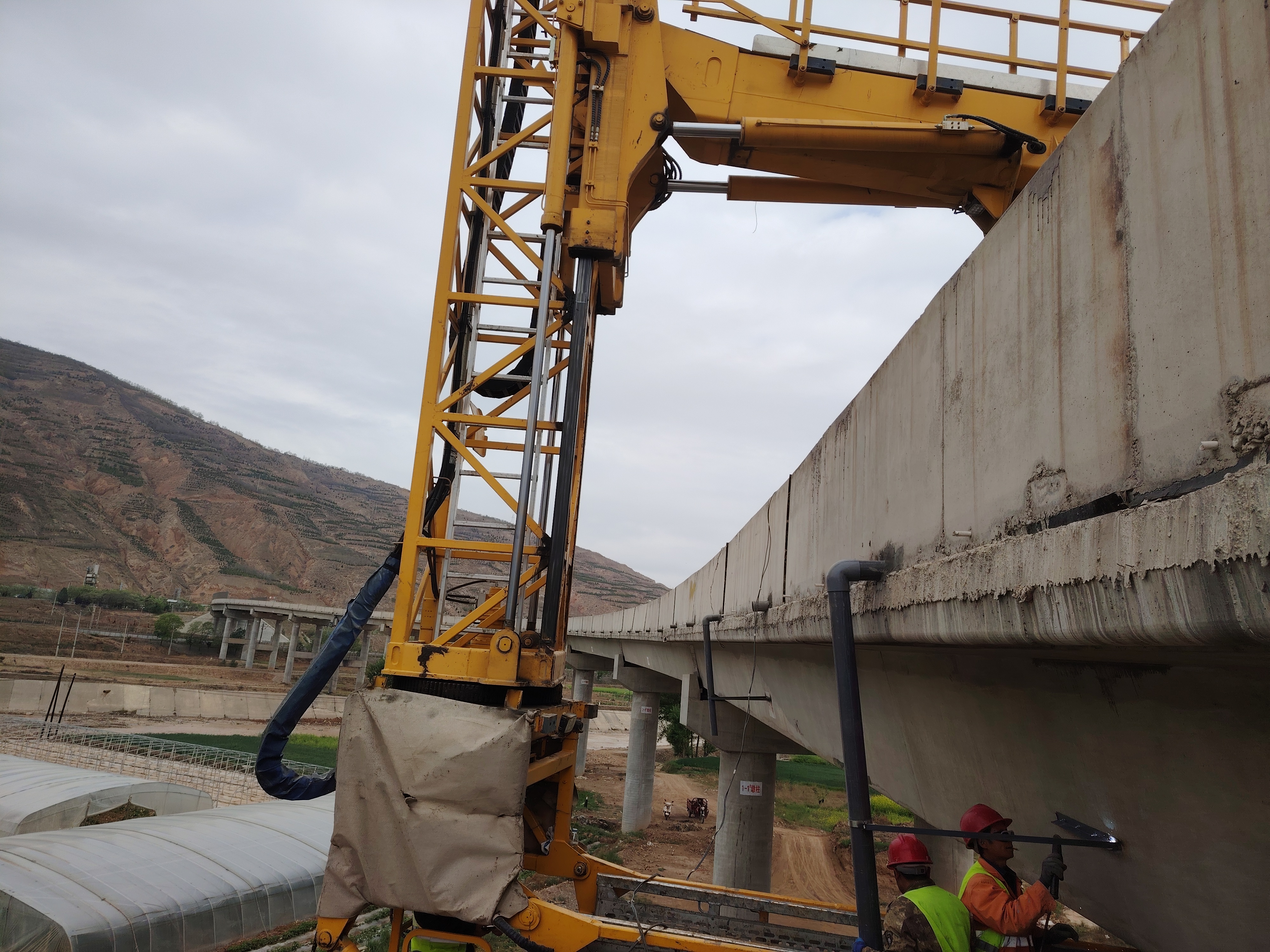 抬头夏伊始,万物换新颜。5月9日,在G310线车川渭河大桥修复养护工程现场,施工人员处治梁板裂缝、防腐涂装、安装UPVC泄水管,一派热火朝天的景象。
