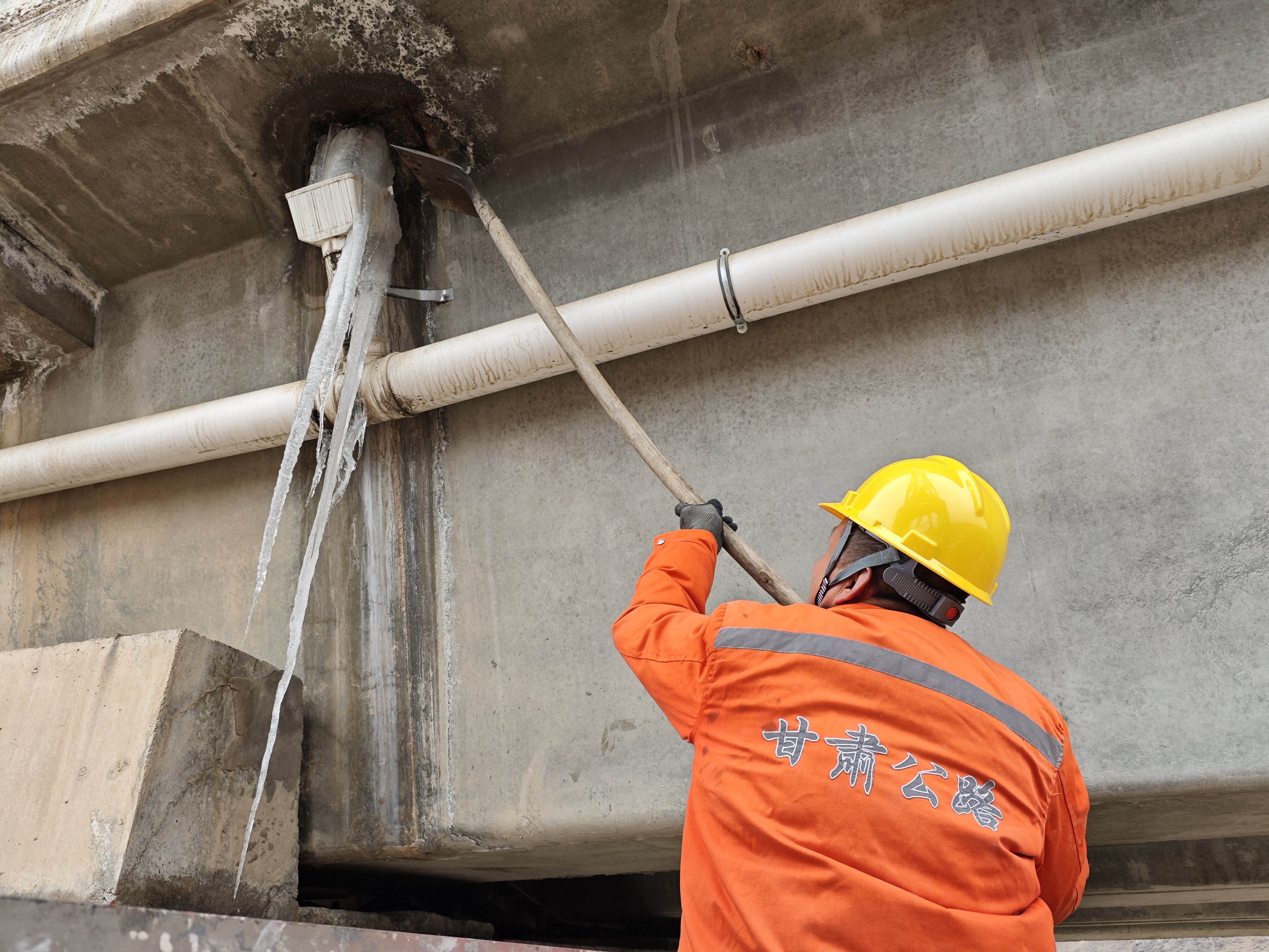 隐患就是命令。张家川公路段坚持预防为先,靶向治理。桥梁周边的醒目位置,一块块安全警示牌被规范摆放,提醒过往车辆与行人注意避让、减速慢行。而另一边,桥梁专业技术员正手持专业工具,奔赴一个个隐患点位。他们仰头、举杆、敲击,将高空悬挂的冰块、冰凌逐一精细清除。一次次挥杆,斩断的是安全隐患,守护的是桥下万千生命。