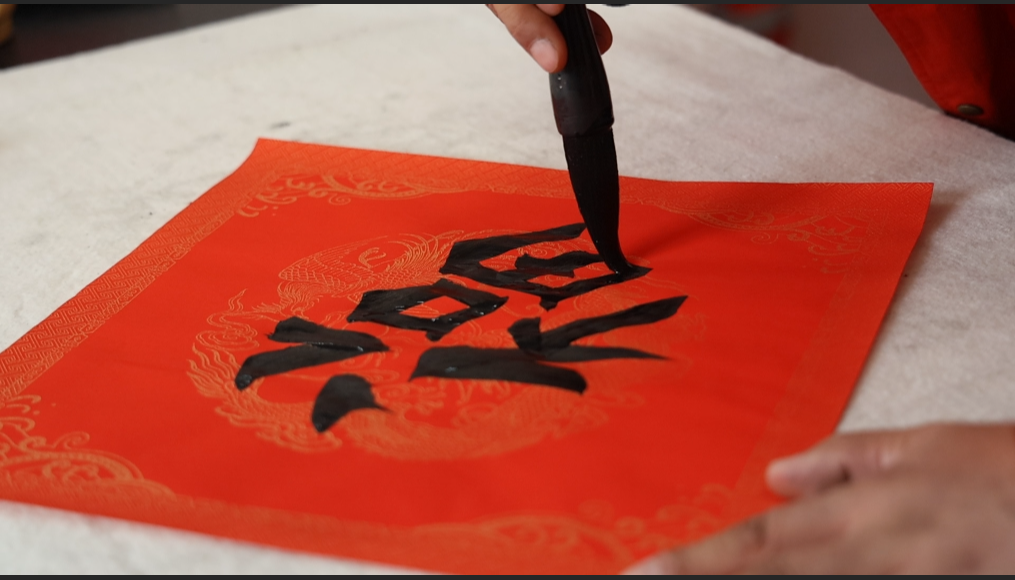 老师傅闫永强提笔蘸墨,在红纸上稳稳写下了一个“福”字。“贴车上,”他笑着说,“车在路上跑,福在路上传。咱养护人送的福,就是平安。”