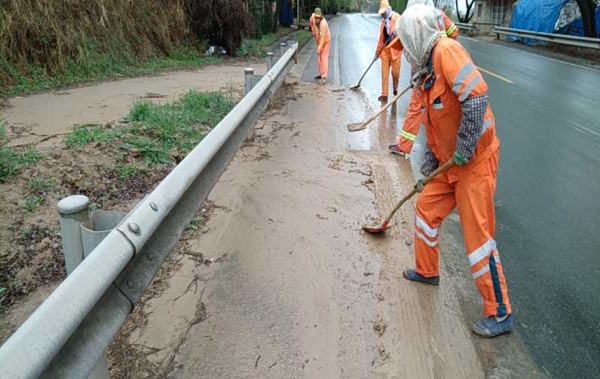 秦州公路段出动人员57人,机械3台,共计清理塌方、落石6立方米,泥石流14立方米,清扫路面86000平方米。(祁玉铭)
