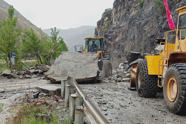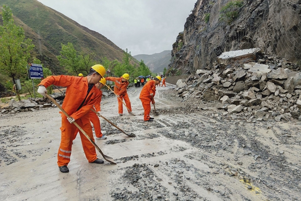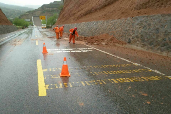 张家川公路段养护的G566线、S221线、X462线部分路段出现了塌方、落石和泥石流等灾害,给雨天行车安全带来一定的影响。张家川公路段一边密切关注雨情一边组织养路工上路对塌方、落石和泥石流冒雨进行了清理,全力保障了养护路段的安全畅通。截止目前,该段职工共冒雨清理塌方32立方米、泥石流58.6平方米、落石24立方米/ 12处。(王小强)