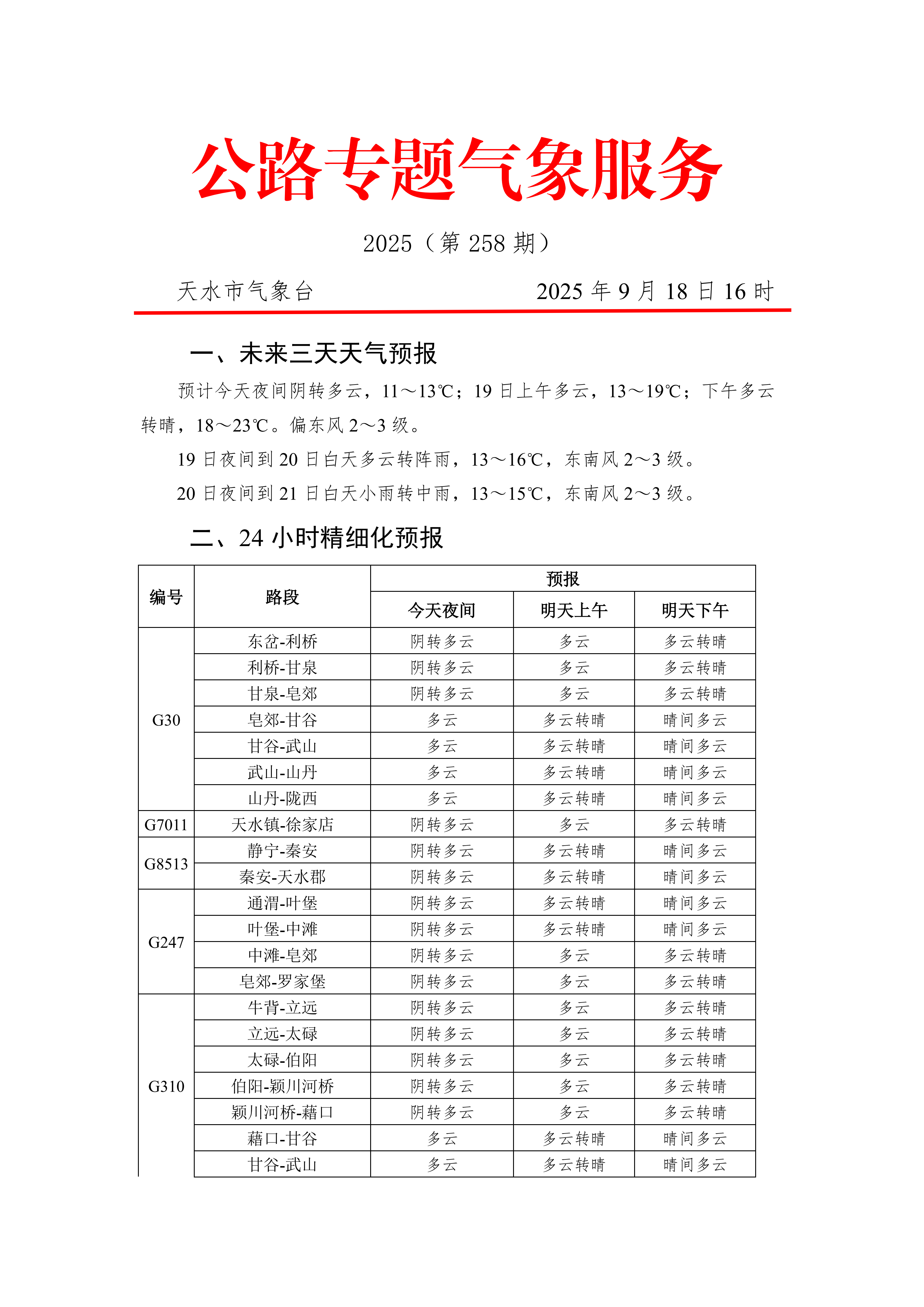 【发布时间:2025年09月19日】【来源:天水市气象局】【作者:路网监测与应急指挥大厅】