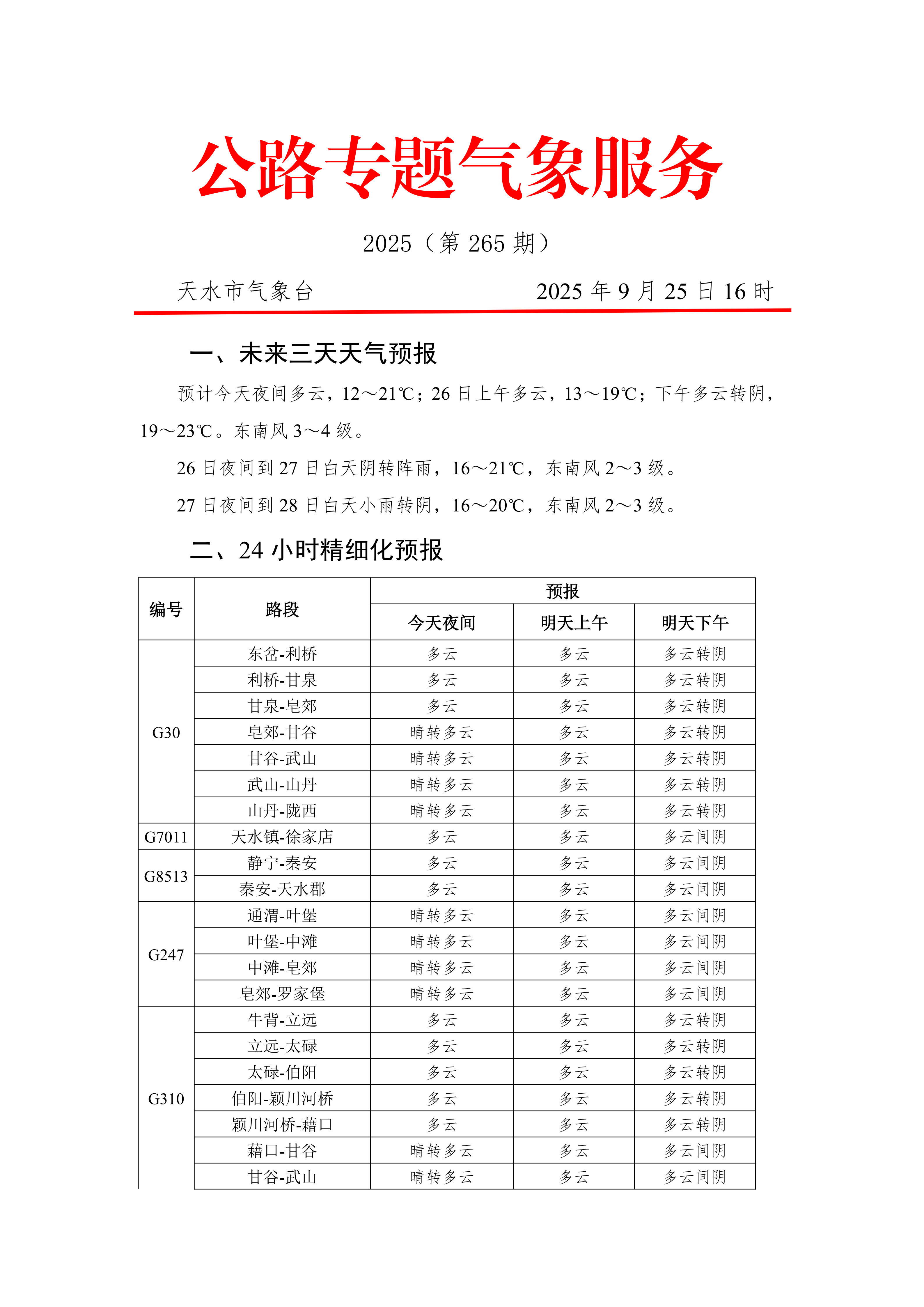 【发布时间:2025年09月28日】【来源:天水市气象局】【作者:路网监测与应急指挥大厅】