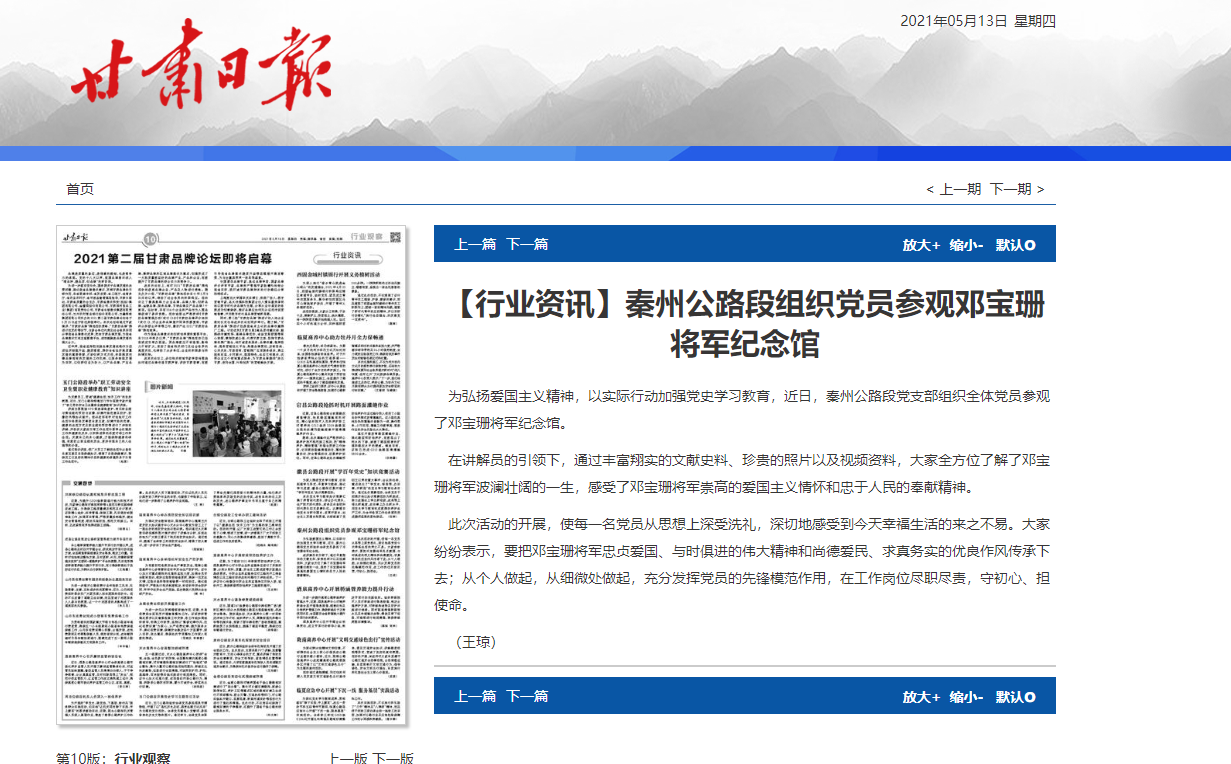 秦州公路段组织党员参观邓宝珊将军纪念馆