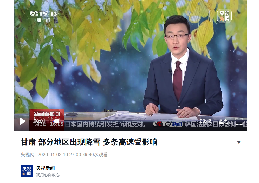 《央视新闻》:甘肃 部分地区出现降雪 多条高速受影响
