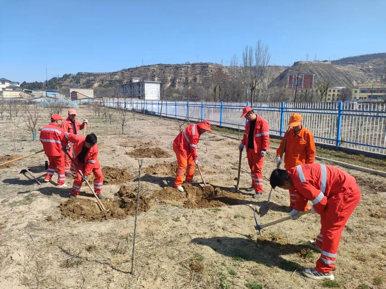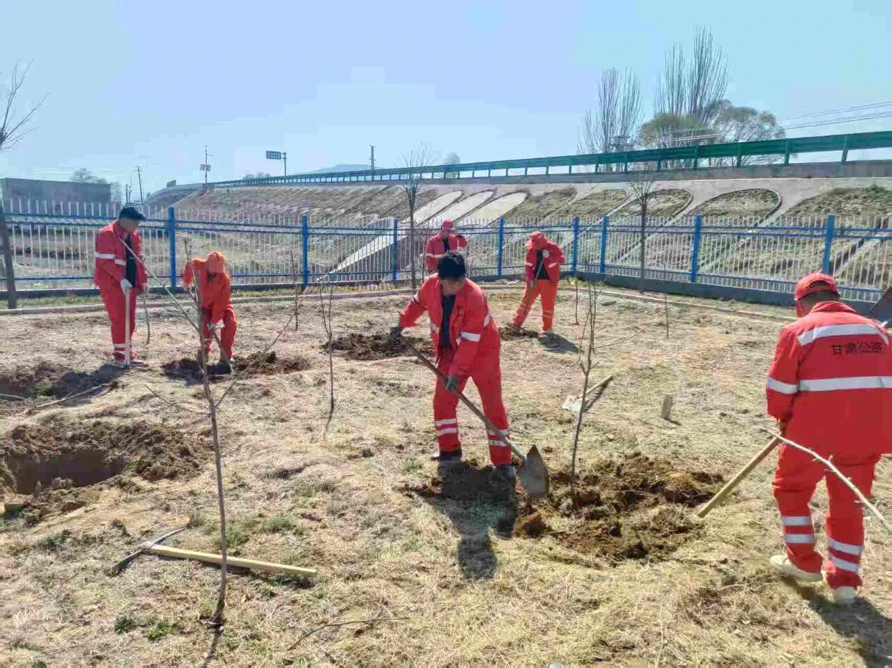 该段结合养护站区空地实际,科学规划布局,将植树绿化与三园建设深度融合,重点打造果园。在植树现场,职工们热情高涨、分工明确,有的翻土挖坑、有的扶苗培土、有的浇水灌溉,每一个环节都一丝不苟、有条不紊。大家默契配合、干劲十足,欢声笑语间,一棵棵充满生机的果苗被稳稳栽种,为站区增添了一抹抹新绿。