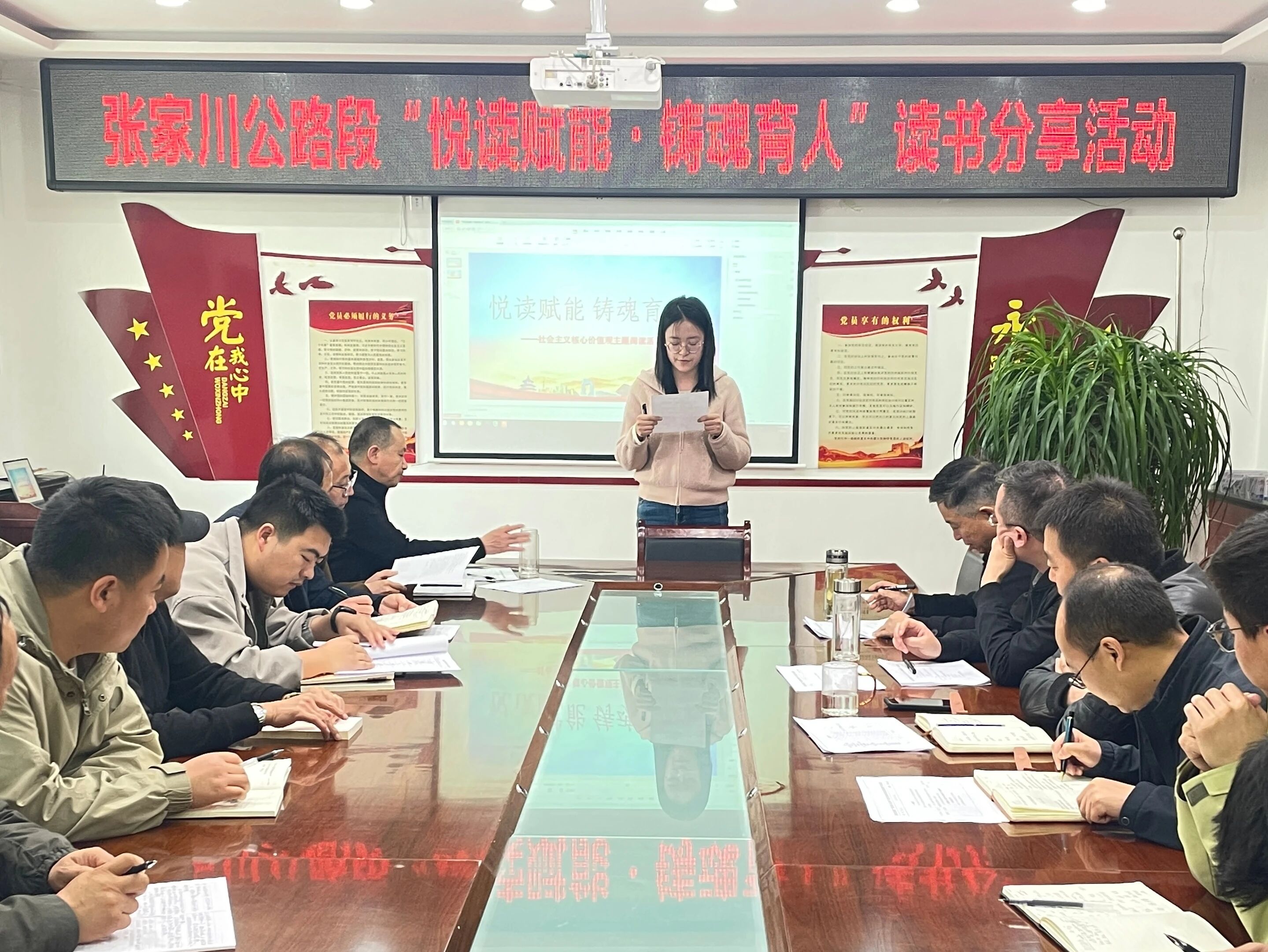 张家川段:4月22日,张家川公路段以“悦读赋能・铸魂育人”为主题,举办读书分享会,让全体干部职工在墨香流转中共话理想信念,让核心价值观在书香浸润中入脑入心。