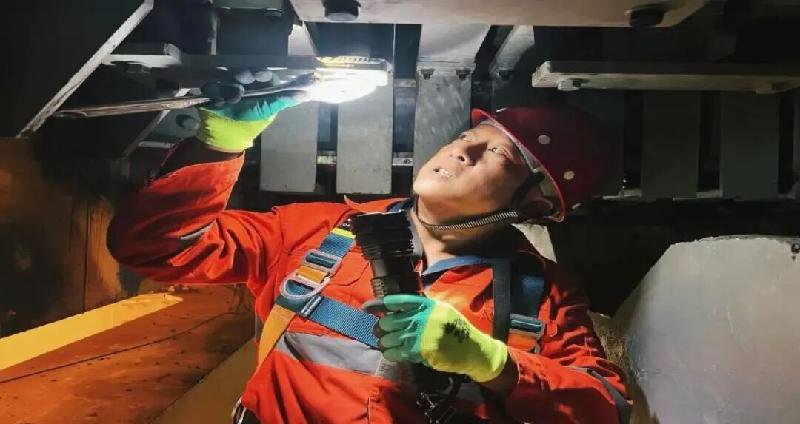 在桥梁底部,临夏公路事业发展中心吕乔艳系好安全绳,一手举着手电,一手握着扳手,对桥梁构件进行检修