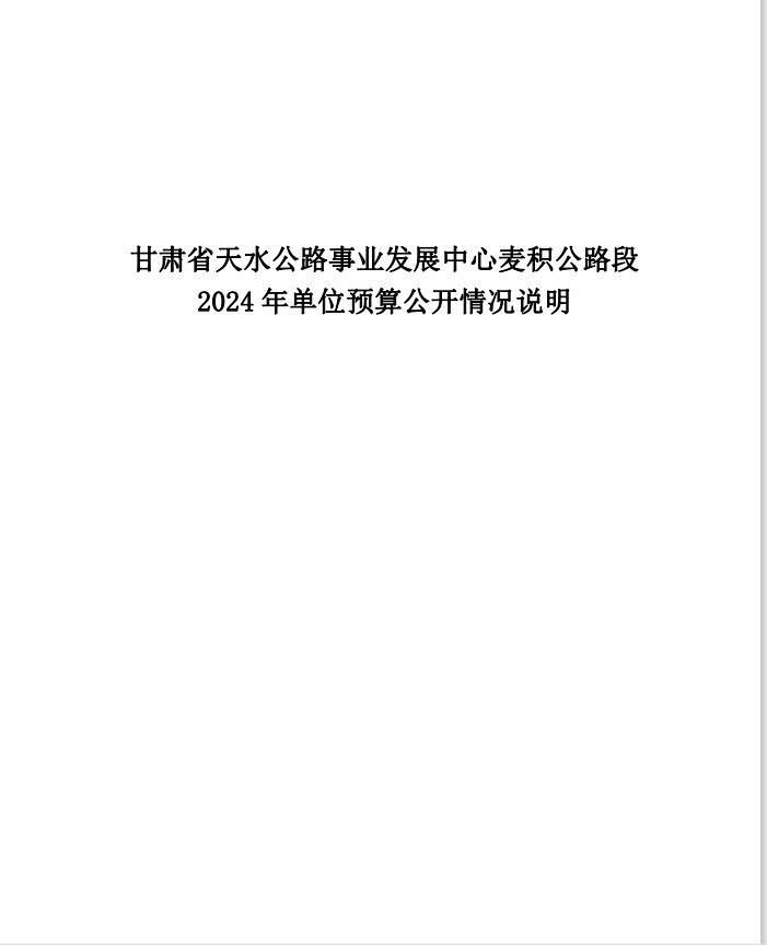甘肃省天水公路事业发展中心麦积公路段2024年度单位预算公开报告