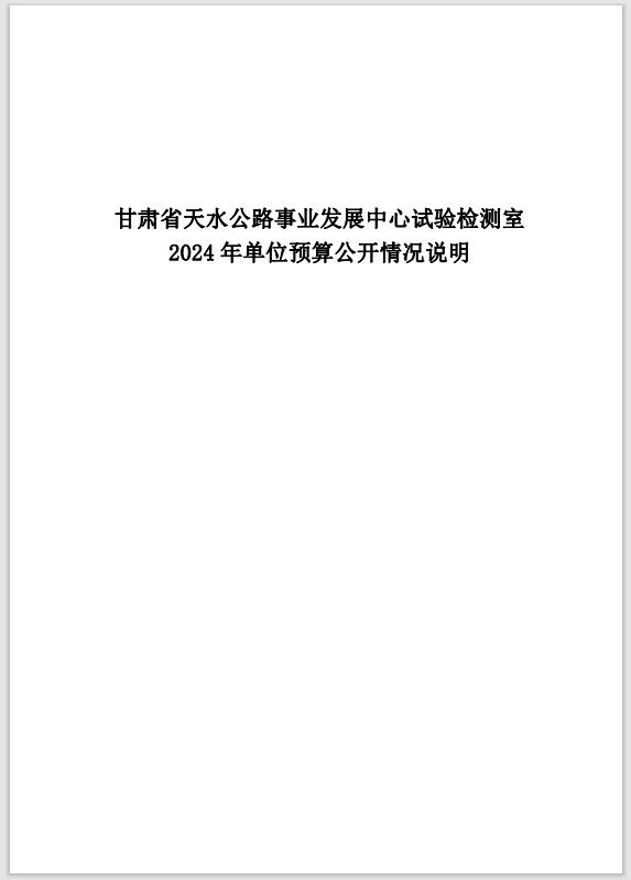 甘肃省天水公路事业发展中心试验检测室2024年度单位预算公开报告