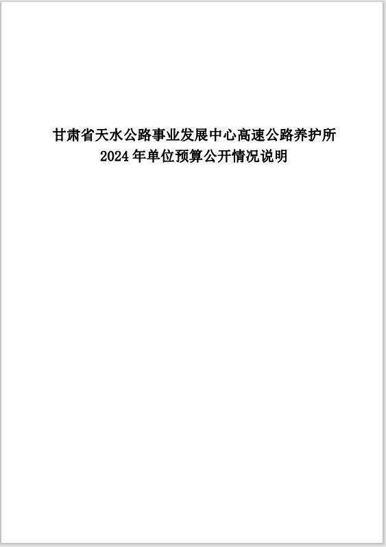 甘肃省天水公路事业发展中心高速公路养护所2024年度单位预算公开报告